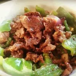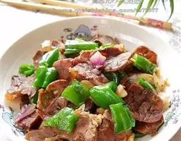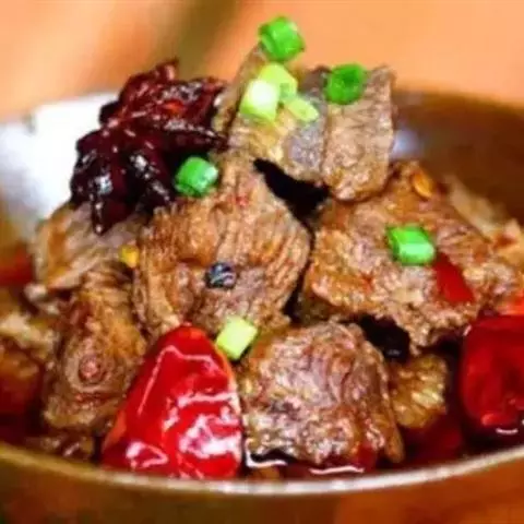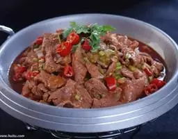 辣椒,又名尖椒。青辣椒可以作为蔬菜食用,干红辣椒则是许多人都喜爱的调味品。辣椒能改善食欲、增加饭量。辣椒具有强烈的促进血液循环的作用,可以改善怕冷,冻伤,血管性头痛等症状。它含有一种特殊物质,能加速新陈代谢以达到燃烧体内脂肪的效果,从而起到减肥作用。辣椒能杀抑胃腹内的寄生虫。它含有丰富的维生素C、可以控制心脏病及冠状动脉硬化、降低胆固醇。它还含有较多抗氧化物质,可预防癌症及其他慢性疾病。可以使呼吸道畅通,用以治疗咳嗽、感冒。 黄牛肉的营养价值很高,特点是高蛋白、低脂肪,属于温热性质的肉食,擅长补气,是气虚之人进行食养食疗的首选肉食,《韩氏医通》记载“黄牛肉补气,与绵黄芪同功。”就补养的脏腑来说,黄牛肉重在补养脾胃,从而滋养其他脏腑。