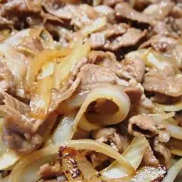小炒黄牛肉(成品样图2) 6、将牛肉倒入锅中,一起炒匀,加酱油、蚝油、鸡精和适量的盐炒匀即可。