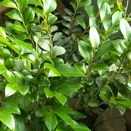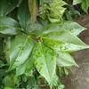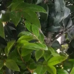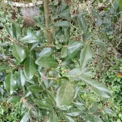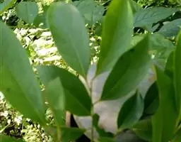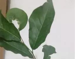 叶薄革质或纸质,披针形或披针状椭圆形,长5-9厘米,宽1.5-3.3厘米,先端渐尖,尖头钝,基部渐狭,下延,在叶柄上端1/3形成狭翅,上面深绿色,有光泽,干后往往呈黑色,下面绿色,嫩时薄被柔毛,中脉上面凹下,下面突起,侧脉和小脉很纤细,两面都微凸起,约略可见,侧脉在近叶缘处相连结,小脉结成小网状;叶柄细瘦,长约5毫米,有短柔毛,上面有小槽。