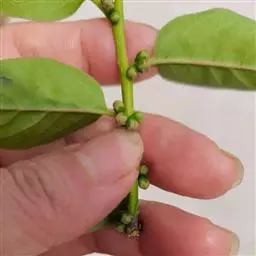 6月上中旬,柿绵蚧第一代卵孵化盛期,打药扑虱灵1500-2000倍;或高效氯氰2000-2500倍,打药重点部位,枝条、叶片、果实、柿蒂,兼治苹大卷叶蛾,茶翅蝽、叶蝉等。