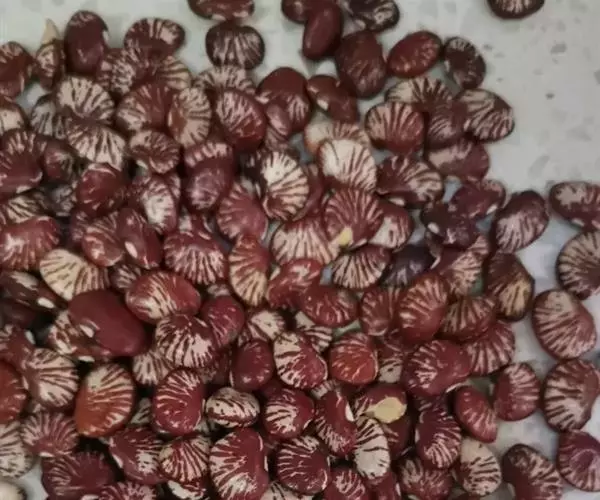 荷包豆因外形酷似少数民族的荷包而得名,又名肾豆,因其形状如人体肾脏、全身布满红色经络花纹而得名。