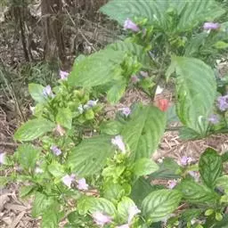 多年生草本,茎直立,高30~60厘米,疏分枝,略四棱,有白色多节长毛,基部节膨大膝曲。叶对生,叶片宽卵形或三角状宽卵形,长4~10厘米,宽2.6~6厘米,先端渐尖,基部契形,稍下延,边缘具钝圆疏锯齿。穗状花序头形,顶生或腋生,有花数朵,长2.5~3.5厘米,腋生者具总花梗;苞片叶状,外面的长约1.5~2厘米,里面的较小;小苞片条状匙形,长约1厘米;花萼裂片5,线形,先端钝,约与小苞片等长,三者均具白色多节柔毛;花冠漏斗状,长2.5~3.5厘米,花冠筒稍弯曲,下部狭细,外面在裂片部分硫生短柔毛,里面有2行短柔毛,裂片5,几相等,长约5毫米;雄蕊2强,花丝基部有膜相连。蒴果长圆形,长约1厘米,近顶端有短柔毛;种子4颗,宽椭圆形,长约3毫米,有褐色微毛。花期8~9月,果期9~10月。