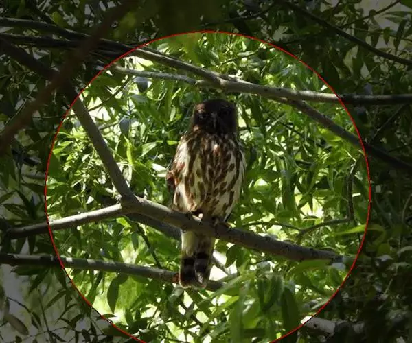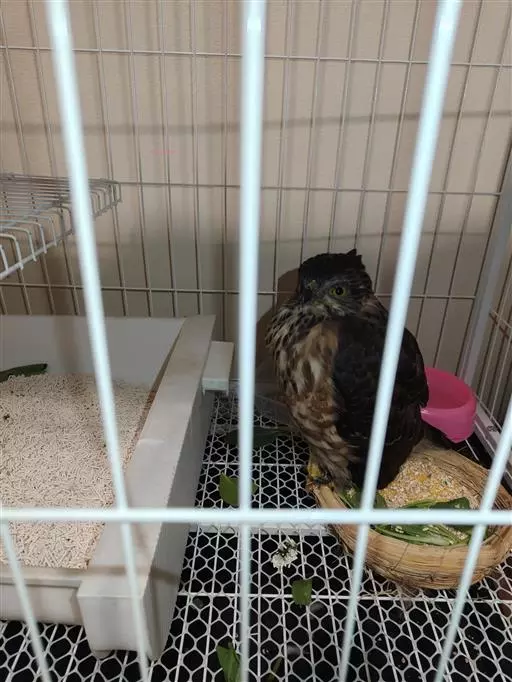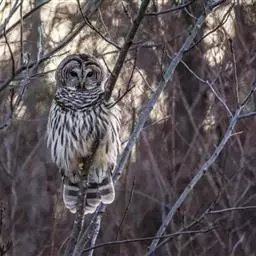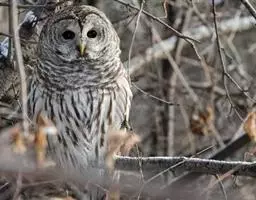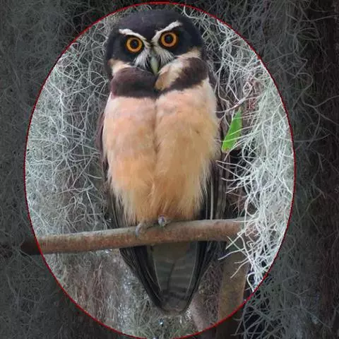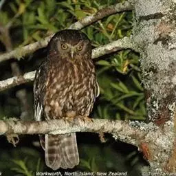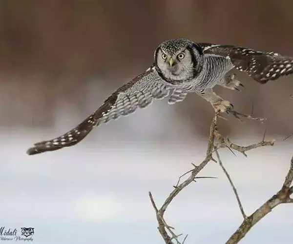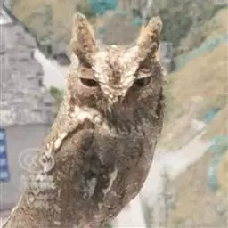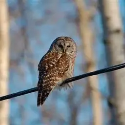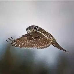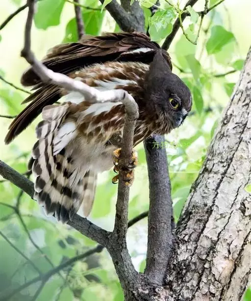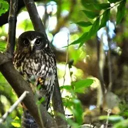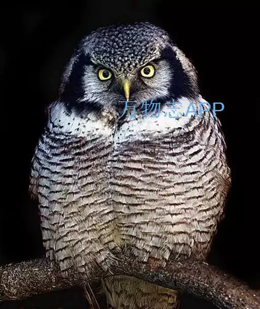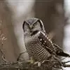 猛鴞(Surnia ulula),是中型鸟类,体长35~40厘米,体重247~375克。具鹰样的尾,脸部图案深褐色与白色纵横。属于国家二级重点保护野生动物。