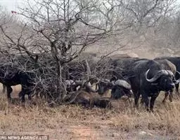 非洲野水牛:共有5个亚种。头体长2.1-3.4米,身高1-1.7米,体重300-900千克。胸膛宽…
