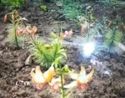 种球的解冻和消毒:种球到货后立即打开包装放在10-15℃的环境下进行解冻,待完全解冻后进行消毒。消毒方法:将种球放入千分之一的克菌丹、百菌清、多菌灵、高锰酸钾等水溶液中浸泡30分钟,也可以将种球放入80倍的40%的福尔马林溶液中浸泡30分钟,取出后用清水冲净种球上的残留溶液,然后在阴凉的地方晾干方可定植。国内有的种植基地,在定植前,剪去原有的基生根,这样有利于促发新的基生根。