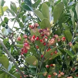 常绿灌木或小乔木,高达8米。 叶光亮革质,倒卵形或窄长椭圆形,长3-6厘米,宽2-3厘米。 聚伞花…