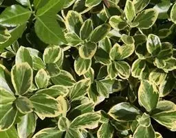 金边扶芳藤是原产黄河流域以南各省区的常绿灌木(藤状)。匍匐或以不定根攀援,茎长达5米以上,小枝近四棱形,叶小似舌状,较密实,有光泽,