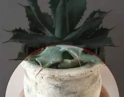 由白绢病病菌(Sclerotiumrolfsii)引起的南方枯萎病症状:白绢病病菌可以侵染植株的一部分,但是在叶片和茎部最容易观察到。最初,茎段与介质接触的地方有水渍状病斑,另一个症状叶片表面或基质上长出扇圆形的霉状物,起初是白色的,以后随着发育变成黑褐色。尤其是在温暖的若植株受了感染,则很容易导致插条的腐烂。