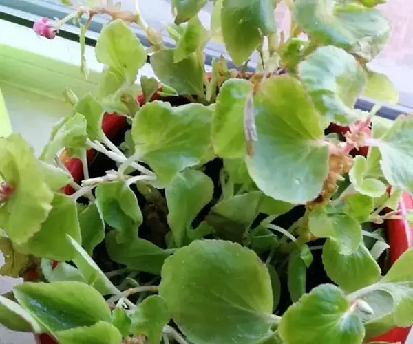 真菌病害,由葡萄孢菌(Botrytiscinerea)引起的灰霉病症状:秋海棠叶片灰霉病经常发植株的下部,尤其是根茎处与基质接触的地方更容易感染病菌,被水浸润的病斑很快会扩散到整个叶整个植株,受害区域呈现坏死斑点,逐渐由褐色转变为黑色。当夜间温度较低、白天温度较高而且湿高时,病原孢子生长加快,受害的叶片上会长出灰绿色的霉状物。