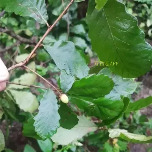 落叶乔木或灌木状,高达20米,树皮灰褐色,深纵裂。小枝密生灰色至灰褐色绒毛;冬芽卵状圆锥形,芽长4-6毫米,芽鳞多数,被疏毛。叶片倒,卵形、椭圆状倒卵形,长7-15厘米,宽3-8厘米,顶端钝或短渐尖,基部楔形或窄圆形,叶缘具波状锯齿或粗钝锯齿,幼时两面被灰黄色星状毛,侧脉每边8-12条,叶背支脉明显;叶柄长3-5毫米,被棕黄色绒毛。雄花序长6-9厘米,花序轴被绒毛,雌花序长1-4厘米,生2-4朵花,壳斗杯形,包着坚果约1/3,直径0.8-1.1厘米,高4-8毫米;小苞片卵状披针形,排列紧密,在口缘处稍伸出。坚果长椭圆形或卵状长椭圆形,直径0.7-1.2厘米,高1.7-2厘米,无毛,果脐突起。花期4月,果期10月。