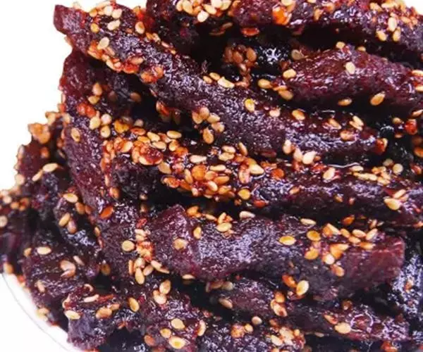 10. 然后中火收汁,汁干时加入辣椒油,撒上炒熟的芝麻翻炒均匀出锅,凉后装盘食用。
