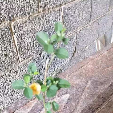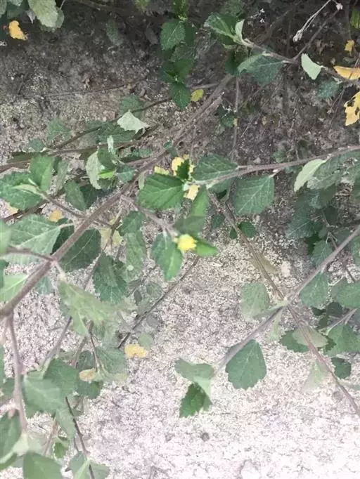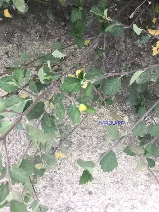 直立亚灌木,高约1米,小枝被星状长柔毛。叶二型,下部生的宽菱形至扇形,长2.5-5厘米,宽近似,先端短尖至浑圆,基部楔形,边缘具2齿,上部生的长圆状椭圆形至长圆形,长2-3厘米,两端钝至浑圆,上面疏被星状毛或糙伏毛至几无毛,下面密被灰色星状毡毛;叶柄长5-10毫米,被星状柔毛;托叶钻形,较短于叶柄。花单生或簇生于小枝端,花梗长约1厘米,密被星状粘毛,中部以上具节;萼杯状,长约7毫米,裂片三角形,疏被星状柔毛;花黄色,直径1-1.5厘米,花瓣倒卵形,长约8毫米;雄蕊柱长约5毫米,被长硬毛。果近圆球形,直径约6毫米,分果爿8-9,疏被星状柔毛,具短芒;种子黑褐色,平滑,长2毫米,种脐被白色柔毛。花期6-11月。