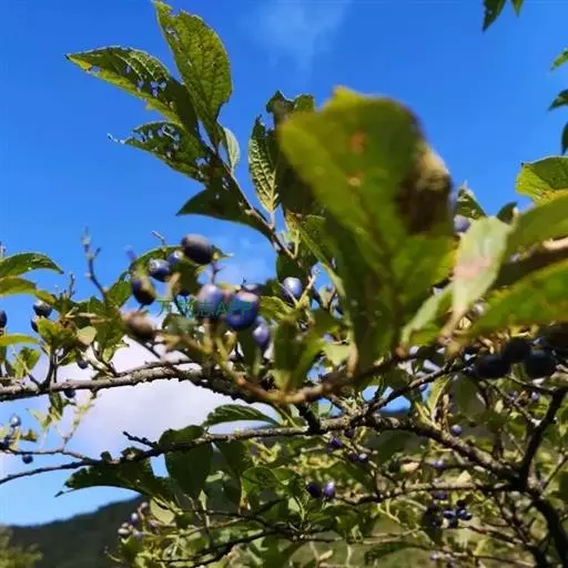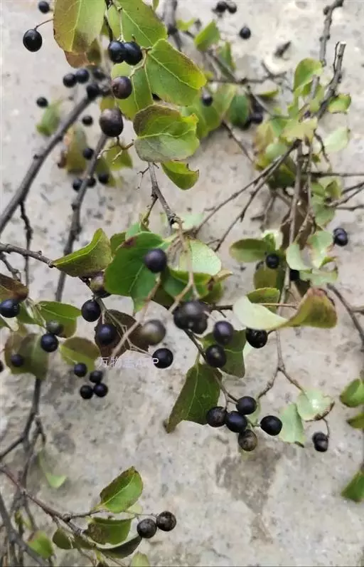 核果熟时蓝色,卵状球形,稍偏斜,长5-8毫米,顶端宿萼裂片直立。