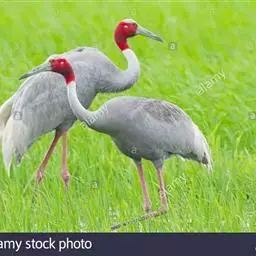 巢的大小距水位50-86厘米,直径12.5厘米以上。每窝产2-4枚卵,通常产1- 2卵。卵浅蓝色,孵化期28-30天。孵化后约12小时,雏鸟就能游泳和漂浮在水面 上。24小时后开始自己吃东西。通过孵化的第二天,幼鸟就能够与父母徜徉并寻找食物,晚上不愿意回巢。雏鸡孵化后整个家庭不在于稀树草原觅食,而是保持在沼泽地区,那里的草丛能提供最大的食物覆盖范围。孵化56-100天后小鸟长出羽毛。亚成鸟将加入种群一起活动,3岁左右达到生殖成熟。