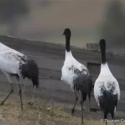 黑颈鹤:是鹤科、鹤属的大型涉禽,体长110-120厘米,体重4-6千克。颈、脚甚长,通体羽毛灰白色,…
