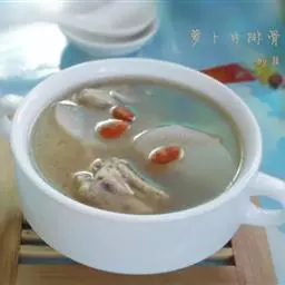 5.用大火把汤烧开,转小火慢炖2小时左右,出锅前5分钟调入枸杞火和食盐即可。