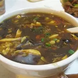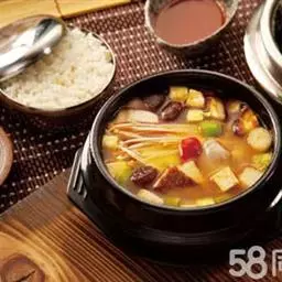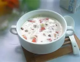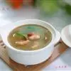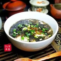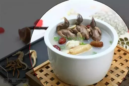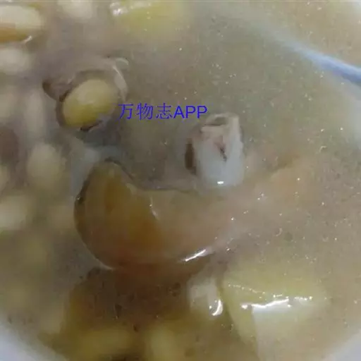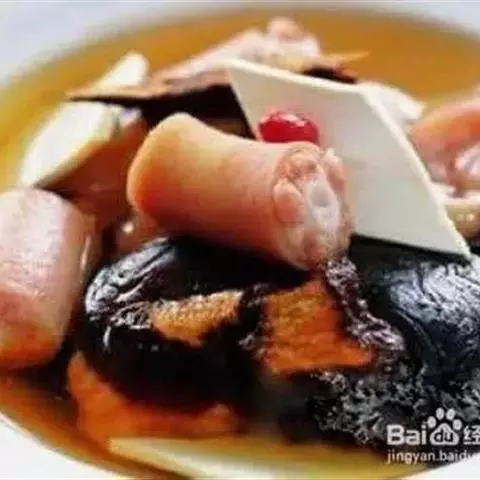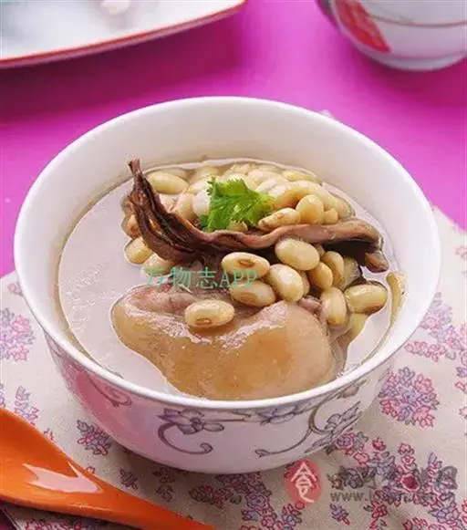 ②加绍酒、葱及用清水浸泡过1小时的黄豆,中火35分钟,加盐、味精调味,再高火15分钟即可。