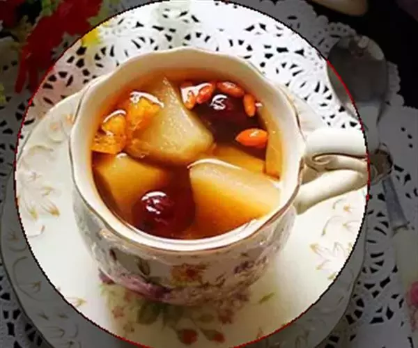 主料:猪蹄半只;黄豆1把;红枣4颗;淮山药18克;花生1把;红皮);蜜枣2颗;枸杞少许。