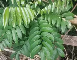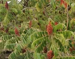 木蜡树 落叶乔木或小乔木,高达10米;幼枝和芽 被黄褐色绒毛,树皮灰褐色。奇数羽状复叶互生,有小叶3-6对,稀7对,叶轴和叶柄圆柱形,密被黄褐色绒毛;叶柄长4-8厘米;小叶对生,纸质,卵形或卵状椭圆形或长圆形,长4-10厘米,宽2-4厘米,先端渐尖或急尖,基部不对称,圆形或阔楔形,全缘,叶面中脉密被卷曲微柔毛,其余被平伏微柔毛,叶背密被柔毛或仅脉上较密,侧脉15-25对,两面突起,细脉在叶背略突;小叶无柄或具短柄。圆锥花序长8-15厘米,密被锈色绒毛,总梗长1.5-3厘米;花黄色,花梗长1.5毫米,被卷曲微柔毛;花萼无毛,裂片卵形,长约0.8毫米,先端钝;花瓣长圆形,长约1.6毫米,具暗褐色脉纹,无毛;雄蕊伸出,花丝线形,长约1.5毫米,花药卵形,长约0.5毫米,无毛,在雌花中雄蕊较短,花丝钻形;花盘无毛;子房球形,径约1毫米,无毛。核果极偏斜,压扁,先端偏于一侧,长约8毫米,宽6-7毫米,外果皮薄,具光泽,无毛,成熟时不裂,中果皮蜡质,果核坚硬。