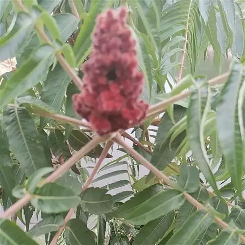 火炬树是漆树科盐麸木属落叶灌木或小乔木;株高,树形不整齐;小枝粗壮,红褐色,密生绒毛;叶轴无翅,…