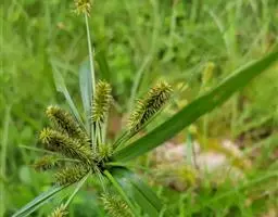 短叶水蜈蚣,是莎草科植物,根状茎长而匍匐,外被膜质、褐色的鳞片,具多数节间,节间长约1.5厘米,每一节上长一秆。秆成列地散生,细弱,高7-20厘米,扁三稜形,平滑。