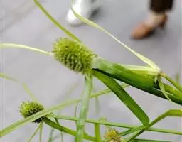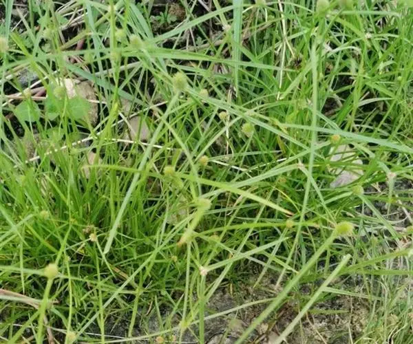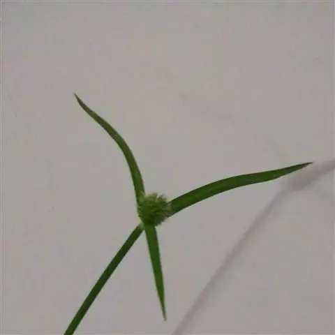 叶状苞片3枚,极展开,后期常向下反折;穗状花序单个,极少2或3个,球形或卵球形,长5-11毫米,宽4.5-10毫米,具极多数密生的小穗。小穗长圆状披针形或披针形,压扁,长约3毫米,宽0.8-1毫米,具1朵花;鳞片膜质,长2.8-3毫米,下面鳞片短于上面的鳞片,白色,具锈斑,少为麦秆黄色,背面的龙骨状突起绿色,具刺,顶端延伸成外弯的短尖,脉5-7条;雄蕊3-1个,花药线形;花柱细长,柱头2,长不及花柱的1/2。