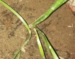 根状茎长而匍匐,外被膜质、褐色的鳞片,具多数节间,节间长约1.5厘米,每一节上长一秆。秆成列地散生,细弱,高7-20厘米,扁三稜形,平滑,基部不膨大,具4-5个圆筒状叶鞘,最下面2个叶鞘常为干膜质,棕色,鞘口斜截形,顶端渐尖,上面2-3个叶鞘顶端具叶片。叶柔弱,短于或稍长于秆,宽2-4毫米,平张,上部边缘和背面中肋上具细刺。