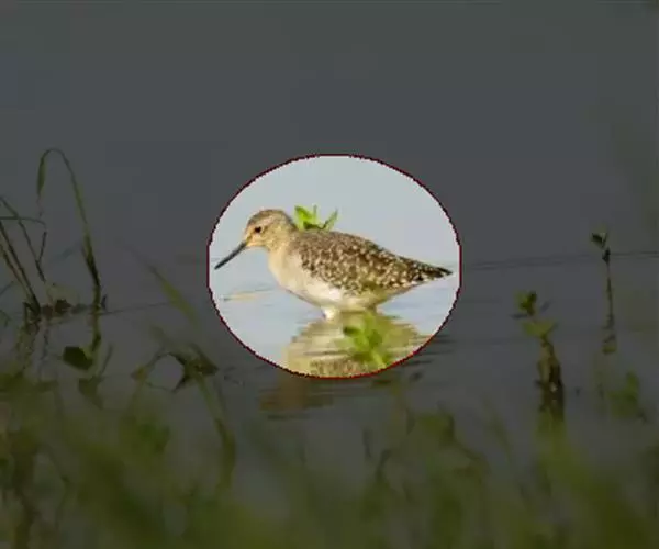小黄脚鹬(学名:Tringa flavipes):小型涉禽,体长23-25厘米。嘴较细直、黑褐色。脚较长、橙黄色。夏羽头、颈、胸具褐色纵纹,眼周有显著的白色圈,在暗色的头上甚为醒目。肩、背、三级飞羽黑色具白色斑点。腰和尾上覆羽白色,下体亦主要为白色。冬羽上体灰褐色具不清晰的白色斑点,胸灰褐色微具淡色纵纹。