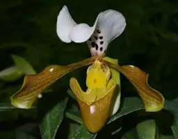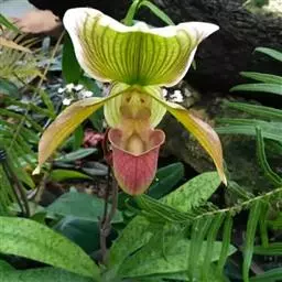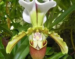 槽舌兰(学名:Holcoglossum quasipinifolium (Hayata) Schltr.):茎长达5厘米,被宿存的叶鞘。叶多数,圆柱形。总状花序腋生,通常具1-3朵花;花开展;萼片和花瓣白色带粉红色,在背面中肋被少数褐红色斑点,多少扭转或边缘波状;花瓣稍斜椭圆形,长1.5-1.6厘米,宽6-7.5毫米,先端钝,基部收狭,具3条脉,其外侧的脉稍分枝,在背面中肋亦隆起呈龙骨状;唇瓣3裂。花期2--9月。