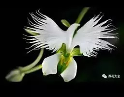 花瓣稍斜椭圆形,长1.5-1.6厘米,宽6-7.5毫米,先端钝,基部收狭,具3条脉,其外侧的脉稍分枝,在背面中肋亦隆起呈龙骨状;唇瓣3裂;侧裂片黄褐色,直立,上缘凹缺成前后裂片,其后裂片半圆形,较短,而前裂片近卵状三角形,较长,长约6毫米;中裂片白色,倒卵状菱形,通常长1.3-1.6厘米,宽7-7.5毫米,先端稍收狭并且截头状而具凹缺,前端边缘多少波状或具细齿,基部收狭而其中央具5-7条小鸡冠状褶片;距狭长,长1.2-1.8厘米,粗约2毫米,向末端变狭,有时向前弯曲;蕊柱长约6毫米;药帽前端伸长。花期2-4 (-9) 月。