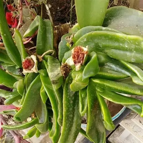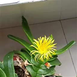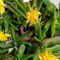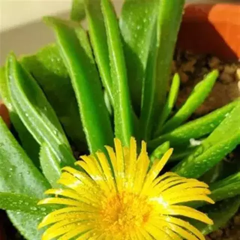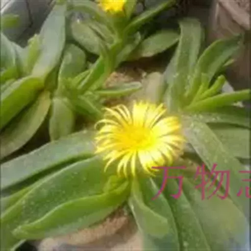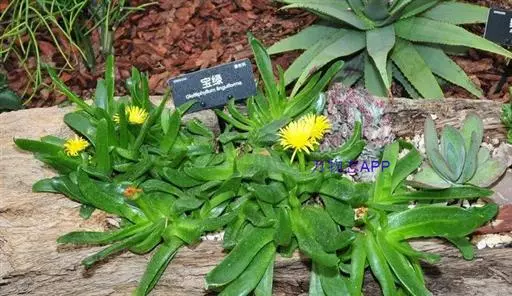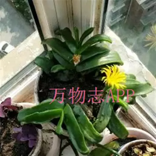 宝绿中文学名弯叶日中花,拉丁文名Mesembryanthemum uncatum Salm-Dyck,又名舌叶花、佛手掌。