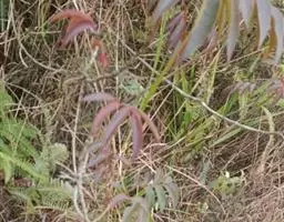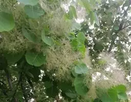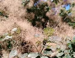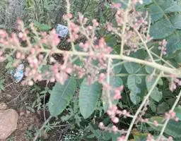 圆锥花序长20-35厘米,多花密集,被灰黄色微柔毛,分枝开展,最基部分枝长6-15厘米;苞片披针形,长约1.5毫米,被微柔毛;花小,杂性,黄色或淡黄色;花梗长1.5-3毫米,具节;萼片卵状披针形,长2.5-3毫米,宽约1.5毫米,渐尖,外面被微柔毛,边缘具细睫毛;花瓣长圆形或长圆状披针形,长3.5-4毫米,宽约1.5毫米,无毛,里面具3-5条棕褐色突起的脉纹,开花时外卷;花盘膨大,肉质,5浅裂;雄蕊仅1个发育,长约2.5毫米,花药卵圆形,不育雄蕊3-4,具极短的花丝和疣状花药原基或缺;子房斜卵形,径约1.5毫米,无毛,花柱近顶生,长约2.5毫米。