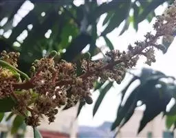 芒果白粉病多发生于开花结果期,为害花序和叶片。