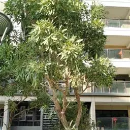 芒果树冠球形,常绿乔木,郁闭度大,为热带良好的庭园和行道树种。