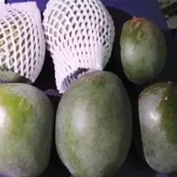 泰国白花芒又名青皮芒,原产泰国,其特点是自果实的腹肩至果腹有一条明显的沟槽,果皮多为暗绿色,果肉淡黄色,质腻滑,味浓甜,芳香,纤维少,品质优。种子扁薄,多胚。产量中等,植株易感流胶病。其果皮青色,肉色淡,在一些地方影响其销路和价值。