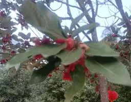 金缕梅科,水丝梨属。常绿乔木。高达14米,小枝有鳞毛;叶互生,革质,叶片矩圆状卵形,全缘或中部以上…