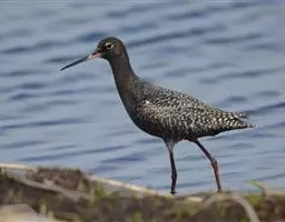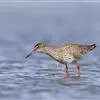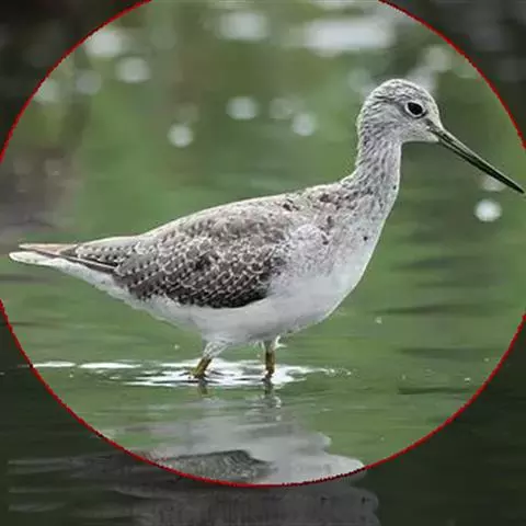 红脚鹬:体长28厘米,上体褐灰,下体白色,胸具褐色纵纹。飞行时腰部白色明显,次级飞羽具明显白色外缘。…