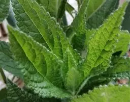 多年生草本。茎直立,不分枝,高6-20厘米,四棱形,密被灰白色绵毛状长柔毛,幼嫩部分尤密。基生叶具柄,柄长0.7-2厘米,茎上部叶无柄;叶片均纸质,椭圆状长圆形或椭圆状卵圆形,长1.5-4厘米,宽1-1.5厘米,先端钝或微急尖,基部楔状下延,抱茎,边缘有不甚明显的波状齿或波状圆齿,具长柔毛状缘毛,上面密被下面疏被柔毛状糙伏毛,脉3或5出,两面突起。