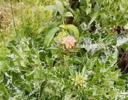 魁蓟菊科蓟属植物,多年生草本,高达1米,茎枝被长毛,基部和下部茎生叶长椭圆形或倒披针状长椭圆形,…