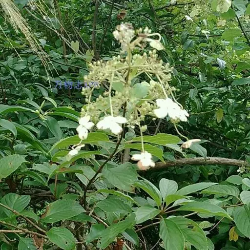 复伞形花序顶生,大而疏散,总花梗基部托以叶状总苞片,分枝3-5出,纤细,被黄色疏柔毛;杯形不孕性花不脱落,可孕性花小;萼筒杯状,萼齿三角形;花冠白色,仅基部联合,花药黄色或紫色;子房3室,花柱极短或几无,柱头3裂。