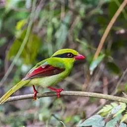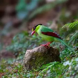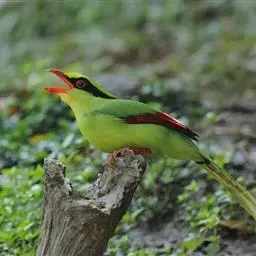 蓝绿鹊:中型鸟类,共有5个亚种。体长36-38厘米。尾长,嘴、脚红色。通体羽色主要为草绿色,…