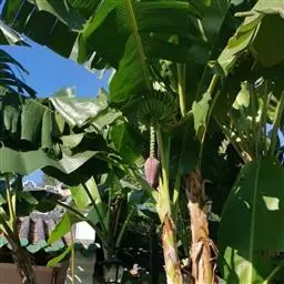 紫苞芭蕉形如一枝亭亭玉立、含苞待放的荷花,但却开在高高的芭蕉树上,这就是紫苞芭蕉。
