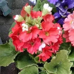 症状:灰霉病为报春花的常见病害之一,中国各地均有发生。植株感病后,整株黄化,枯死。该病主要侵染叶片、嫩茎、花器等部位。多在叶尖、叶缘处发生。发病初期叶片出现水浸状斑点,以后逐渐扩大,变成褐色并腐败。后期,病斑表面形成灰黄色霉层。茎部感病后,病斑呈褐色,逐渐腐烂。花器被侵染后也成为褐色,腐烂脱落。在潮湿的条件下,病部出现灰色霉层,这是该病的一大特征。该病以菌核在病残体和土壤内越冬。气温20℃左右、空气湿度大时易发病。通过风雨、工具、灌溉水传播。温室中冬末春初发病最为严重。