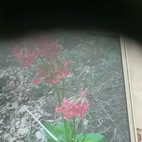 花葶高10-60(90)厘米,顶端被白色粉 (干后常呈乳黄色);伞形花序5-10花,有时出现第2轮花序;苞片披针形,长5-10毫米;花梗长1-5厘米,多少被粉,开花时下弯,果时直立;花萼窄钟状,长10毫米,上半部分裂成披针形或三角状披针形裂片,沿裂片背面下延至基部一线无粉,染紫色,沿每2裂片的边缘下延至基部密被白粉,因而整个花萼形成紫白相间的10条纵带;花冠红紫色至深玫瑰红色,长1.5-2.5厘米,喉部无环状附属物,冠檐直径1.5-2.5厘米,裂片倒卵状矩圆形;先端圆形或微具凹缺;长花柱花:冠筒长9-10毫米,雄蕊着生处略低于冠筒中部,花在与自冠尚等长或微露出筒口;短花柱花;雄蕊近冠筒口着生,花柱长2-3毫米。