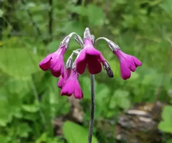 偏花报春(学名:Primula secundiflora Franch.):报春花科,报春花属多年生草本植物,根状茎粗短,叶通常多枚丛生;叶片矩圆形、狭椭圆形或倒披针形,先端钝圆,基部渐狭窄,边缘三角形小牙齿,两面均疏被小腺体,叶柄甚短或有时与叶片近等长,花葶高可达90厘米,伞形花序,有5-10朵花,苞片披针形,花萼窄钟状,染紫色,花冠红紫色至深玫瑰红色,裂片倒卵状矩圆形;蒴果稍长于宿存花萼。6-7月开花,8-9月结果。