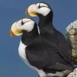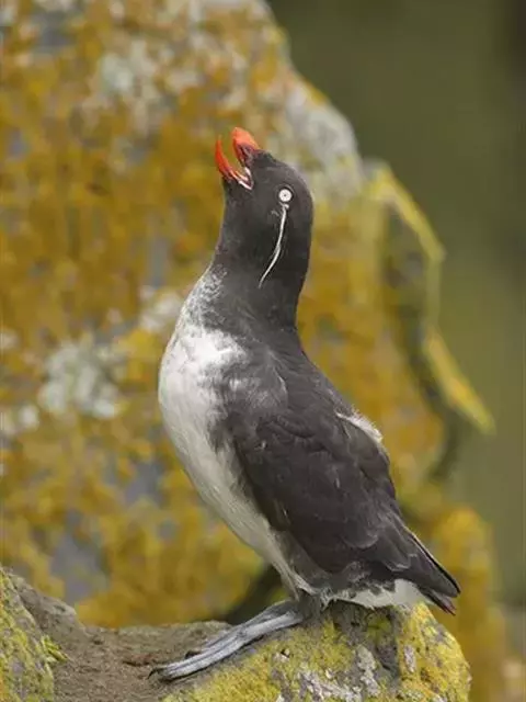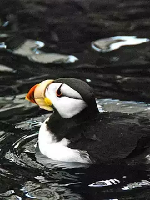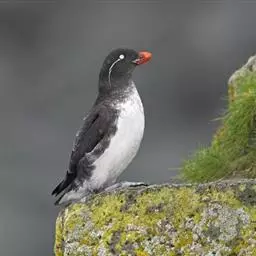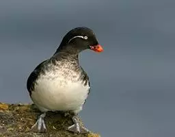 角嘴海雀,是海雀科、角嘴海雀属的中型海鸟,体长32-41厘米,嘴短而粗呈圆锥状、橙色。夏羽上嘴基部…