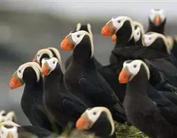凤头海雀:是鸟纲、鸻形目、海雀科的一种海鸟。体重211-322克,体长18-20厘米。前趾间有蹼膜,…