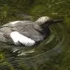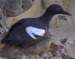 白腹海鹦,前趾间有蹼膜,后趾缺如。翅窄而短小,尾短。体羽黑白二色,雌雄羽色相似