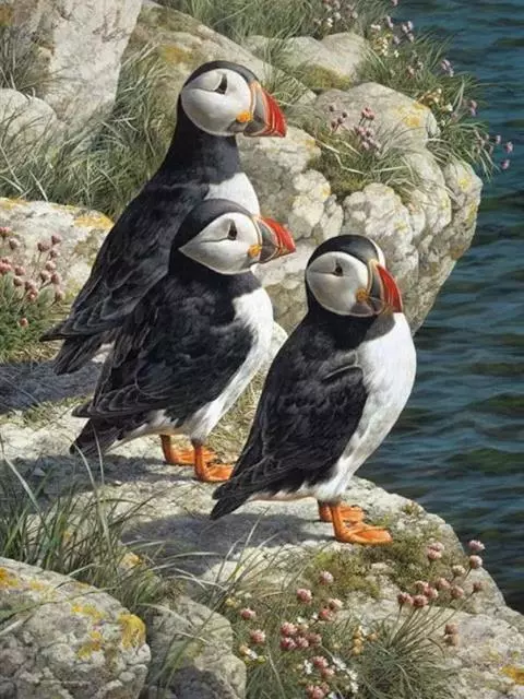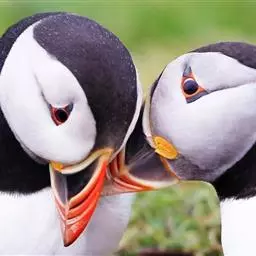 角海鹦:是鸻形目海雀科的鸟类,体重581-648克,体长约32厘米,翼展18-20厘米。是一种身体…
