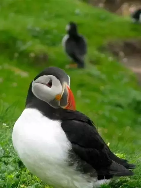 北极海鹦是海雀科的一种海鸟,体长26-38厘米,体重约490克。冠为黑色,脸颊灰色,腹部白色。喙大…